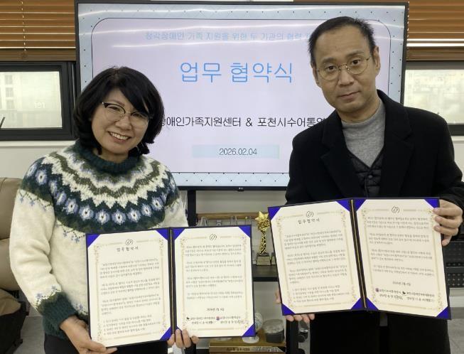 (포탈뉴스통신) 포천시장애인가족지원센터는 지난 4일 포천시수어통역센터와 농인(청각장애인) 가족의 복지 증진과 서비스 접근성 강화를 위한 업무협약(MOU)을 체결했다.