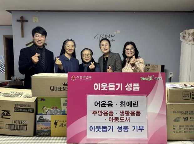 (포탈뉴스통신) 양주시 회천3동은 지난 4일 어윤용·최예린 부부가 성가소비녀회 의정부관구 소속 수녀들이 돌보고 있는 시설에 후원 물품을 기부했다고 밝혔다.
