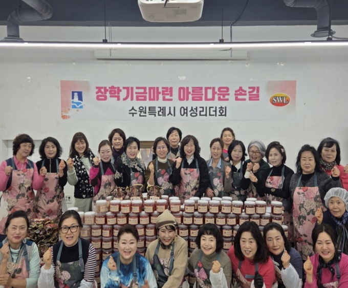 김미애 수원시여성리더회 총회장과 이지영 수원시여성단체협의회 명예회장 등 회원 20여 명이 참여해 명란젓과 낙지젓 등 4종의 젓갈을 소포장해 판매했다. 수익금은 장학금으로 기부할 예정이다.