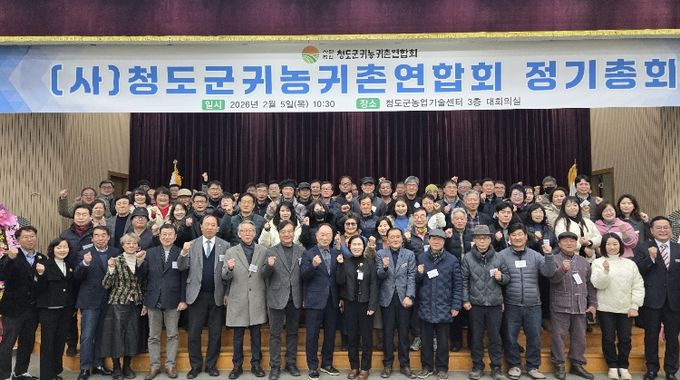 이날 정기총회에는 청도군 내 귀농·귀촌인을 비롯한 관계자 등 약 100명이 참석한 가운데, 2025년도 주요 사업 추진 성과와 결산 보고, 2026년도 사업계획 심의·의결 순으로 진행됐다. 아울러 귀농·귀촌인의 안정적인 정착과 지역 공동체 활성화를 위한 다양한 의견을 나누는 시간도 마련됐다.
