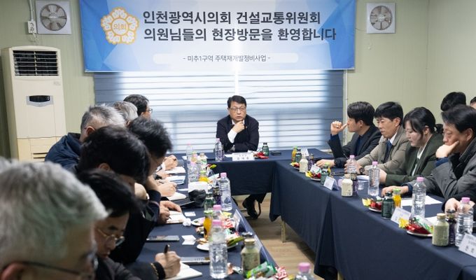 (포탈뉴스통신) 인천광역시의회 건설교통위원회는 5일 김대중 위원장을 비롯해 석정규·박종혁·이단비 의원 등이 참석한 가운데 장기간 공사 중단과 입주 지연으로 주민 불편이 지속되고 있는 미추1구역주택재개발정비사업(주안센트럴파라곤) 현장을 방문해 사업 추진 현황 점검과 문제 해결 방안을 찾는 현장방문을 실시했다.