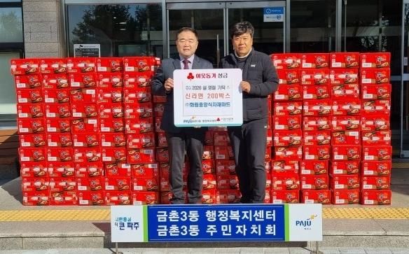 황호영 ㈜화림중앙식자재마트 파주금촌역점 대표는 “민생과 직결되는 식자재의 신선한 에너지처럼 우리 이웃들도 따뜻하고 활기찬 명절을 맞이하길 바라는 마음으로 준비했다”라며 “어르신들과 이웃분들이 부담 없이 드실 수 있는 따뜻한 라면 한 그릇이 추운 겨울을 나는 데 작은 힘이 되길 바라며, 앞으로도 지역사회와 건강하게 상생하는 기업이 되겠다”라고 말했다.