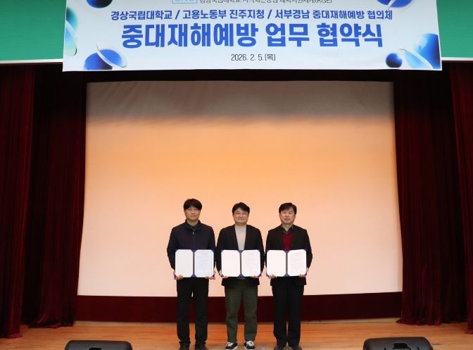 (포탈뉴스통신) 경상국립대학교 라이즈(RISE) 사업단은 2월 5일 사천시 근로자종합복지관에서 서부경남 중대재해 예방 협의체 및 고용노동부 진주지청과 업무협약을 체결했다.
