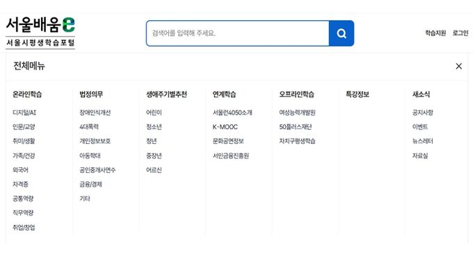 이번 개편에서는 접속 단계를 축소하는 디자인 개편과 함께, 연령별 맞춤형 강좌를 한눈에 찾는 ‘생애주기별 강좌 찾기’ 서비스를 메인에 배치해 접근성을 높였다.