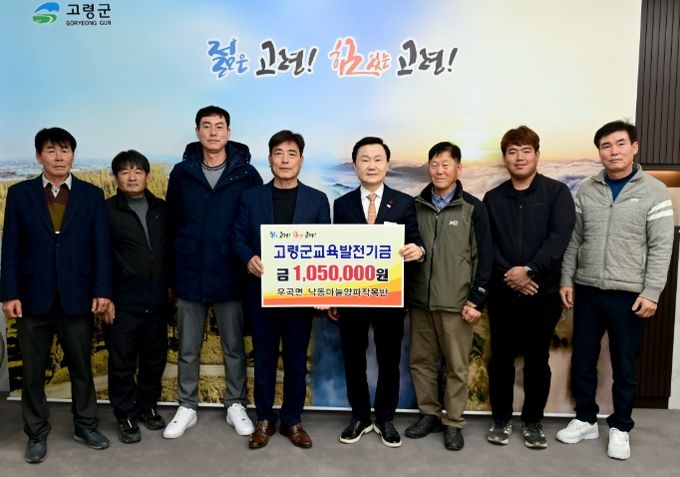 (포탈뉴스통신) 2월 4일 우곡면 낙동마늘양파작목반에서 고령군청을 방문하여 지역의 교육 발전과 인재 양성을 위해 사용해 달라며 교육발전기금 105만원을 기탁했다.