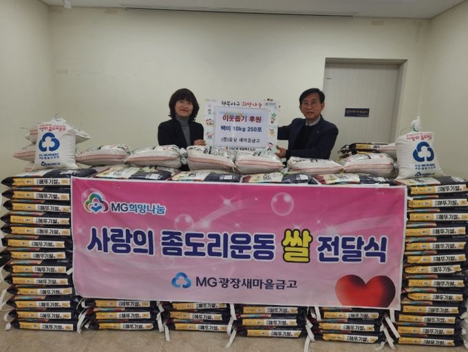 좀도리 운동은‘조금씩 덜어 어려운 이웃을 돕는다’라는 의미를 담은 새마을 금고의 대표적인 사회공헌 활동으로 매년 광장새마을금고는‘사랑의 좀도리 쌀’을 관내 취약계층을 위해 기탁하고 있으며, 올해도 기탁된 쌀은 설 명절을 맞아 관내 어려운 이웃과 경로당에 전달됐다.
