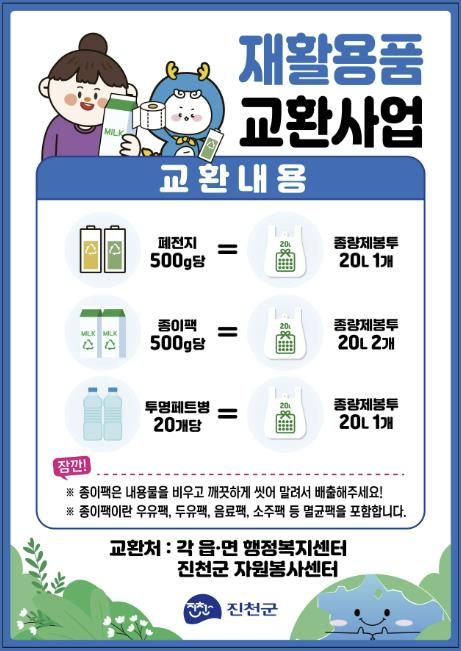 또한, 기존에는 읍·면 행정복지센터에서만 교환할 수 있었으나, 진천군 자원봉사센터를 추가 운영해 주민 접근성을 높였다.