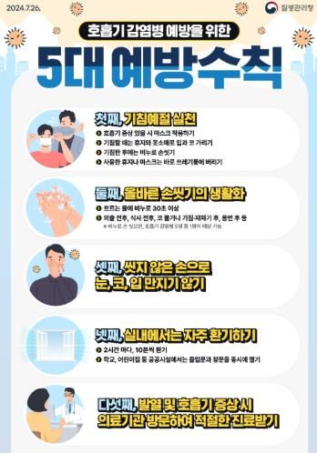 이에 따라 38℃ 이상의 발열 ·기침, 근육통 등의 증상이 있는지 살피고, 손 씻기, 마스크 착용, 기침 예절 준수 등 개인위생을 철저히 지켜야 한다.