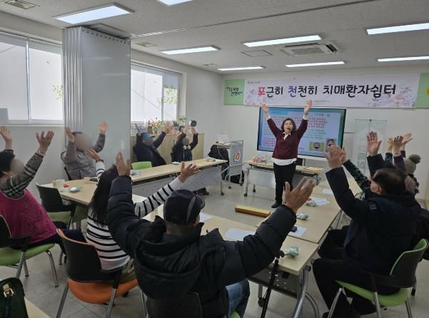 치매환자 쉼터 프로그램은 치매안심센터에 등록된 경증 치매 환자를 대상으로 인지기능 유지와 사회적 관계 형성을 지원하기 위해 마련된 사업이다. 포천시 치매안심센터 2층 프로그램실에서 주 2회 운영되며 약 12명의 치매 환자가 인지 자극·운동·음악 활동 등 맞춤형 프로그램에 참여하고 있다.