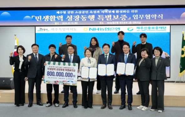 제주도는 10일 NH농협은행 제주본부에서 NH농협은행 제주본부, 제주신용보증재단과 ‘민생활력 성장동행 특별보증’ 업무협약을 체결했다.