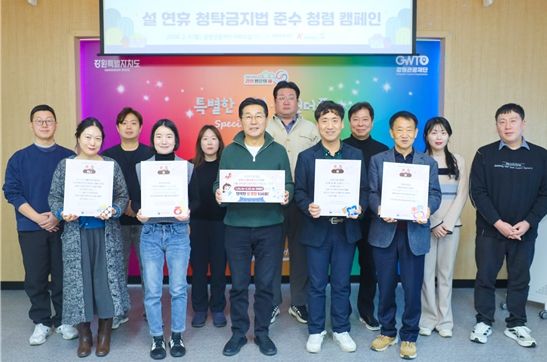 (포탈뉴스통신) 강원관광재단은 지난 9일 설 명절을 앞두고 공직사회의 청렴 문화 확산과 청탁금지법 준수 의식 제고를 위해 청탁금지법 준수 청렴 캠페인을 실시했다.