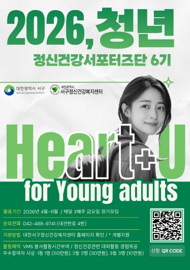 (포탈뉴스통신) 대전 서구 정신건강복지센터는 다음 달 6일까지 청년 정신건강 서포터즈 ‘마음이어유’ 6기 참여자를 모집한다.