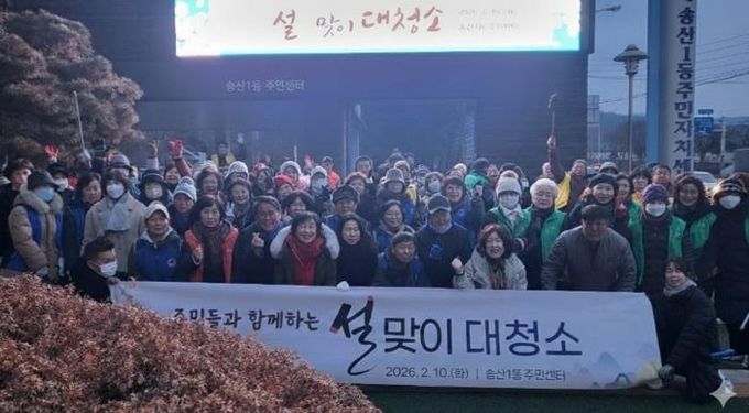(포탈뉴스통신) 의정부시 송산1동주민센터는 2월 10일 다가오는 설 명절을 맞아 귀성객들에게 쾌적한 마을 환경을 제공하기 위해 ‘깨끗한 마을 만들기’ 대청소를 실시했다.