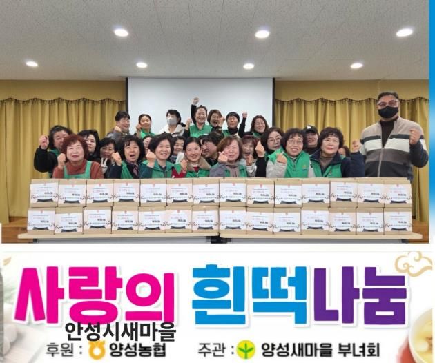 최경미 양성면 새마을부녀회장은 “민족 최대의 명절 설을 맞아 어려운 이웃들께서 떡국을 맛있게 드시며 희망찬 새해를 맞이하시길 바란다”며 “앞으로도 이웃과 정을 나누는 봉사활동을 지속적으로 이어가겠다”고 말했다.