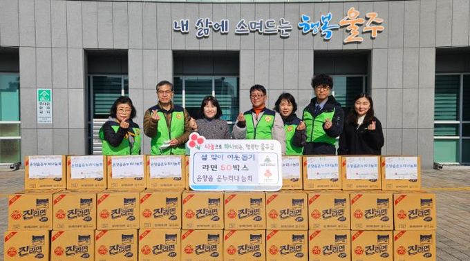 (포탈뉴스통신) 온누리나눔회가 11일 설 명절을 맞아 울주군 온양읍 행정복지센터에 라면 50박스를 기탁했다.