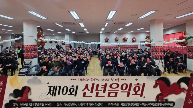 (포탈뉴스통신) 2026년 붉은 말의 해 병오년을 맞이하여 하남시미사강변종합사회복지관과 재단법인 진선재단은 지난 6일 ‘제10회 지역주민 신년음악회’를 공동 주최·주관하고, 300명 이상의 지역주민이 참석한 가운데 새해의 힘찬 시작을 알렸다.