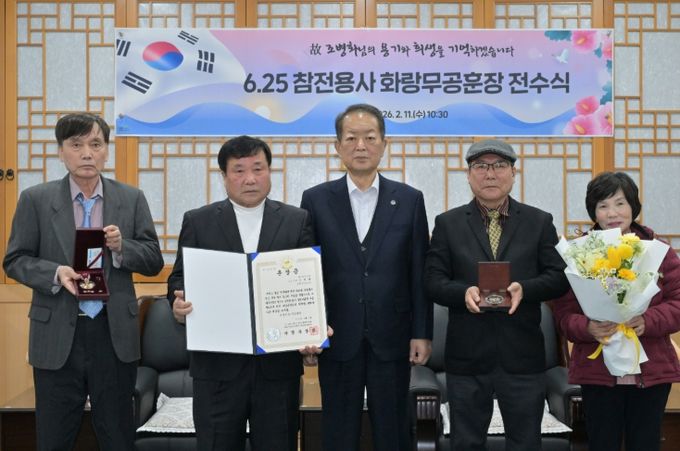 화랑무공훈장은 전투에 참가해 뚜렷한 무공을 세운 자에게 수여되는 훈장으로 서동욱 남구청장은 이날 전수식에서 남구 옥동에 거주하는 故 조병화 중사의 자녀 조천환, 조청환, 조유환, 조종연씨 등 유족에게 화랑무공훈장과 훈장증을 전달했다.
