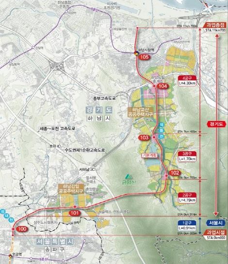 송파하남선 광역철도 건설사업은 서울지하철 3호선 오금역에서 하남시청역까지 총 연장 11.7km 구간을 연결하는 사업이다. 개통이 이뤄지면 하남 및 교산 신도시 입주민들의 서울 접근성이 대폭 향상되어, 하남시청에서 강남고속버스터미널까지 대중교통 이동 시간이 기존 70분에서 40분으로 단축될 것으로 전망한다. 아울러, 대규모 건설공사 시행에 따른 파급효과로 지역경제 활성화 효과도 기대 된다.