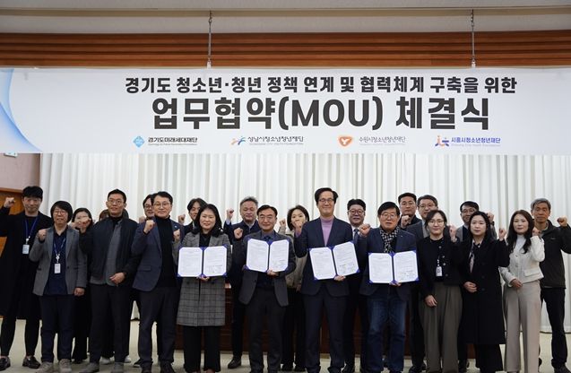 (포탈뉴스통신) 수원시청소년청년재단은 2월 12일, 경기도미래세대재단, 성남시청소년청년재단, 시흥시청소년청년재단과 함께 ‘경기도 청년 정책 연계 및 협력체계 구축을 위한 업무협약’을 체결했다.