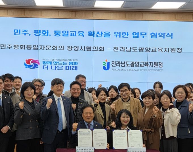 (포탈뉴스통신) 민주평화통일자문회의 광양시협의회(회장 박노신)는 2월 9일 오후 1시 전라남도광양교육지원청과 ‘민주·평화·통일교육 확산을 위한 업무협약’을 체결했다.