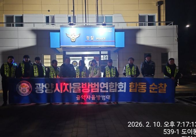 (포탈뉴스통신) 광양시 골약동사무소는 지난 10일 설 명절을 앞두고 지역 내 범죄 예방과 주민 안전 강화를 위해 골약자율방범대(대장 김동근) 주관으로 야간 합동 방범활동을 실시했다고 밝혔다.