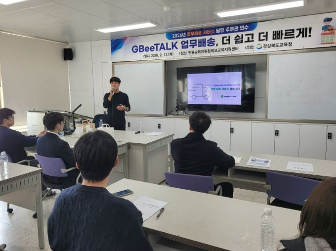 (포탈뉴스통신) 경북교육청은 12일 안동시에 있는 안동교육지원청 학교교육지원센터 대회의실에서 도내 학교지원센터 담당 장학사, 업무 배송 주무관, 업무 배송 팀장 등 약 80명을 대상으로‘2026 모두를 위한 업무 배송 서비스 운영자 연수’를 개최했다고 밝혔다.