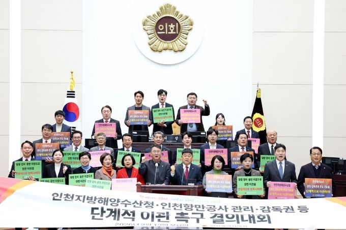 (포탈뉴스통신) 인천광역시의회가 정부를 향해 “인천지방해양수산청과 인천항만공사의 관리·감독권 등 주요 기능을 인천광역시로 단계적으로 이관하라”고 촉구했다.