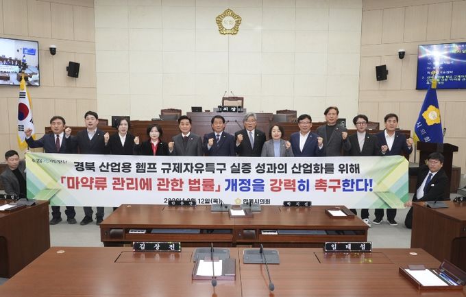 (포탈뉴스통신) 안동시의회는 12일 열린 제264회 임시회 제4차 본회의에서 이재갑 의원이 대표발의하고 의원 전원이 공동발의한 '경북 산업용 헴프 규제자유특구 실증 성과의 산업화를 위한 '마약류 관리에 관한 법률' 개정 촉구 건의안'을 채택했다.