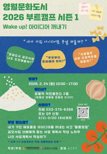 (포탈뉴스통신) (재)영월문화관광재단 문화도시센터는 오는 2월 24일 영월역 문화충전소에서 지역민의 창의적인 로컬 아이디어를 발굴하고 실질적인 사업계획서로 발전시키기 위한 ‘영월 로컬 아이디어 구체화 부트캠프 시즌 1’을 개최한다.