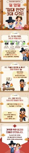 이번 수칙은 명절 기간 빈번하게 발생하는 사고 유형을 분석하여 ▲기도폐쇄 응급처치(하임리히법) ▲주방 식용유 화재 예방 ▲빈집 전열기구 관리 등 생활 밀착형 안전 정보를 담고 있다.