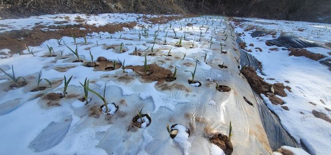 도 농업기술원에 따르면 올해 충남 지역 마늘은 지난해 가을 잦은 비로 인해 난지형 마늘의 파종 시기가 최대 2개월 가량 늦어짐에 따라 지상부 생육이 충분하지 못한 상태에서 월동기에 접어들었다.