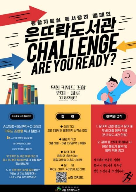 은뜨락도서관 챌린지는 상·하반기마다 3개월씩 운영되는 독서 도전 프로그램이다. 챌린지 참여자는 작가·장르·주제 등 다양한 조건을 조합해 맞춤형 독서 과제를 수행하며, 자연스럽게 독서 영역을 넓히고, 독서 습관을 기를 수 있도록 구성됐다.