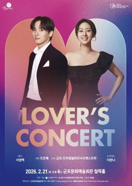 (포탈뉴스통신) 군포문화재단은 오는 2월 21일, 군포 프라임필하모닉오케스트라와 함께 군포문화예술회관 철쭉홀에서 ‘2026 Lover's Concert’를 개최한다.