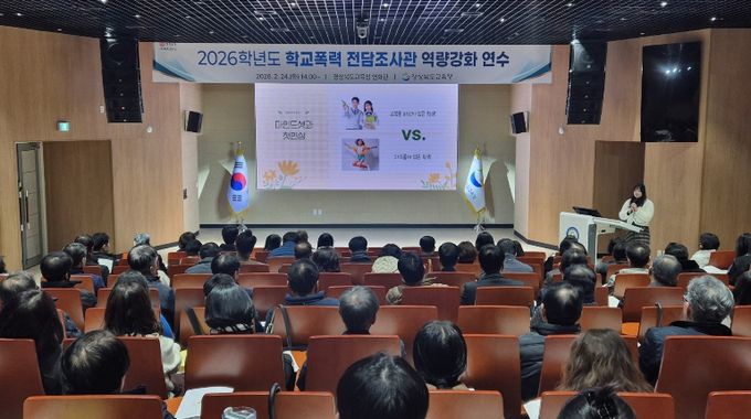(포탈뉴스통신) 경북교육청(교육감 임종식)은 24일 본청 행복지원동 연화관에서 도내 학교폭력 전담조사관 150명과 지역별 업무 담당자 22명 등 총 170여 명이 참석한 가운데 ‘2026학년도 제로센터 학교폭력 전담조사관 역량 강화 연수’를 개최했다고 밝혔다.