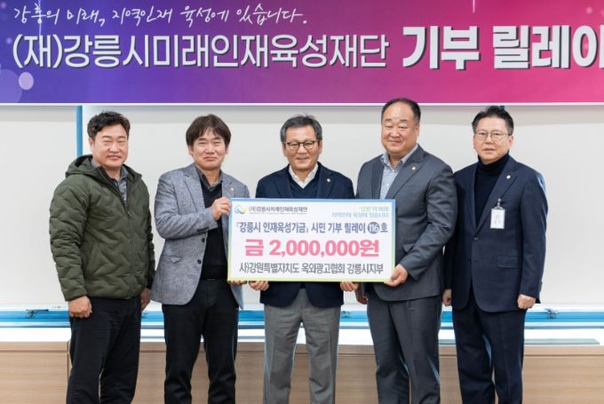 이번 기탁은 수년째 든든한 후원자 역할을 해온 신한은행 강원영동본부의 정성과 지역 인재 양성에 새롭게 힘을 보태기로 한 옥외광고협회 강릉시지부의 마음이 더해져 그 의미를 더했다.