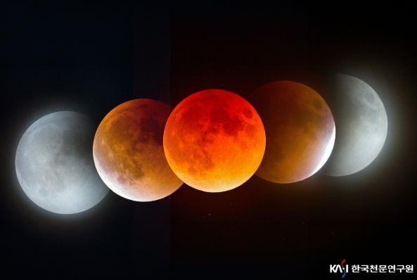 이때 달은 완전히 사라지지 않고, 지구 대기를 통과한 태양빛이 굴절되며 붉은빛을 띠게 된다.