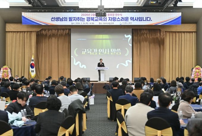(포탈뉴스통신) 경북교육청은 26일 경주시에 있는 더케이호텔경주 거문고홀에서 경북교육 발전에 헌신하고 영예롭게 퇴임하는 교원들을 위한 ‘2026년 2월 말 퇴직 교원 훈포장 전수식’을 개최했다고 밝혔다.