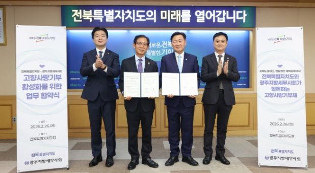 도는 26일 도청에서 광주지방세무사회와 업무협약을 체결하고, 세무 상담 현장과 연계한 세액공제 안내와 제도 홍보를 추진한다고 밝혔다.