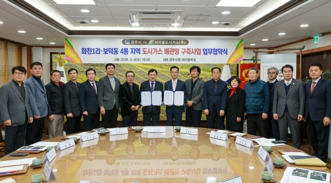 (포탈뉴스통신) 경주시와 서라벌도시가스㈜는 도시가스 미공급 지역인 화천1리와 보덕동 4통 일원에 도시가스 배관망을 구축하기 위한 업무협약(MOU)을 체결했다고 4일 밝혔다.
