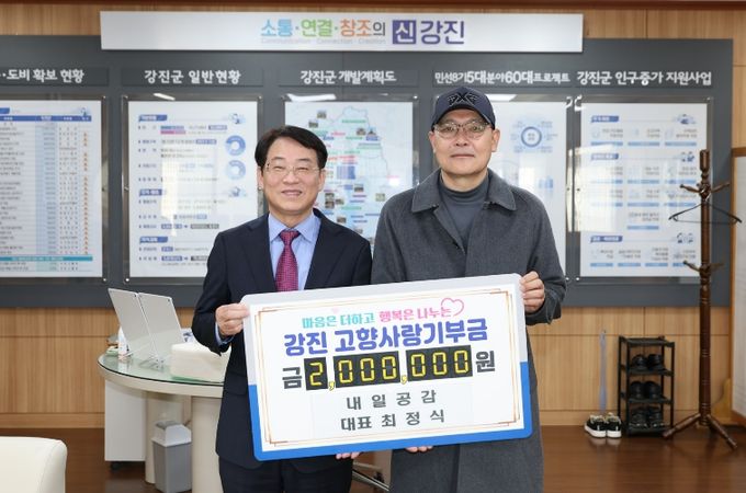 (포탈뉴스통신) 최정식 내일공감 대표가 지역 발전을 염원하는 따뜻한 마음을 담아 강진 고향사랑기부제에 동참하며 나눔 문화 확산에 앞장섰다.