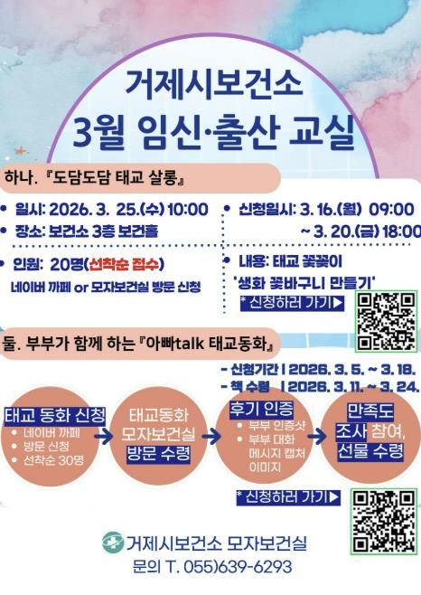 (포탈뉴스통신) 거제시는 임신·출산 친화적 환경을 조성하고 임산부의 건강한 출산 준비를 지원하기 위해 2026년 '도담도담 임신·출산교실' 운영을 시작한다.