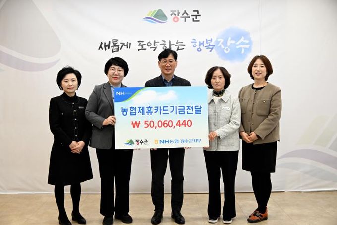 장수군은 4일 군청 소통회의실에서 최훈식 장수군수와 정현주 NH농협은행 장수군지부장 등 관계자들이 참석한 가운데 ‘농협 제휴카드 적립기금 전달식’을 개최했다.