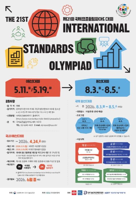 (포탈뉴스통신) 산업통상부 국가기술표준원은 금년 8월에 개최되는 세계 청소년 표준화 경진대회인 '제21회 국제표준올림피아드'에 참가할 한국대표팀 선발을 위해 3월 5일부터 국내 예선대회 참가팀 모집을 시작한다.