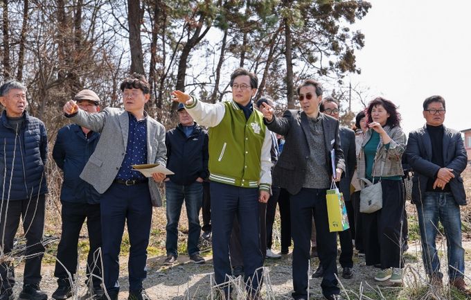 주민과의 대화를 마친 우승희 영암군수 등 영암군 공직자들은, 20여 면민들과 함께 곧바로 시종·도포권역 파크골프장 조성 후보지인 시종소방서 옆 부지를 찾았다.