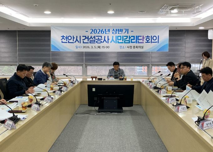 천안시는 5일 시청 중회의실에서 ‘2026년 건설공사 시민감리단 상반기 회의’를 열고, 올해 점검 대상 사업과 세부 운영 계획을 확정했다.