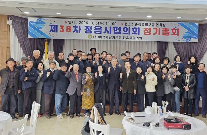 (포탈뉴스통신) 바르게살기운동 정읍시협의회(회장 최창묵)가 지난 5일 순정축협 한우명품관에서 임원과 지역별 위원장 등 60여 명이 참석한 가운데 제38차 정기총회를 개최했다.