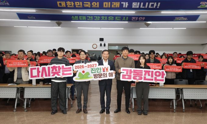 (포탈뉴스통신) 진안군은 6일 군청 강당에서 ‘2026-2027 진안 방문의 해’ 성공을 기원하는 전 직원 다짐 퍼포먼스를 개최했다.