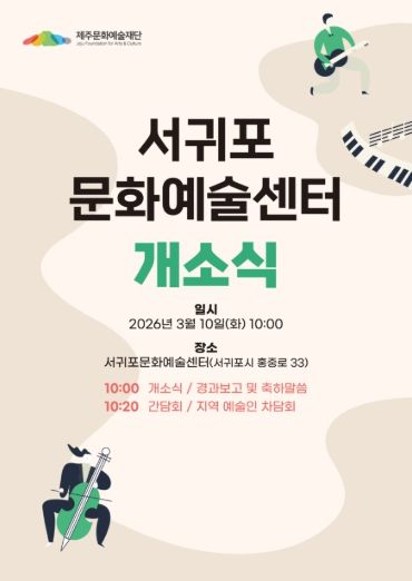 한편, 서귀포문화예술센터는 지난 2월 1일 재단 조직에 정식 편제됐으며, 서귀포예술인복지사무소를 함께 운영해 서귀포 지역 예술인을 위한 행정 지원과 복지 서비스를 강화할 계획이다.