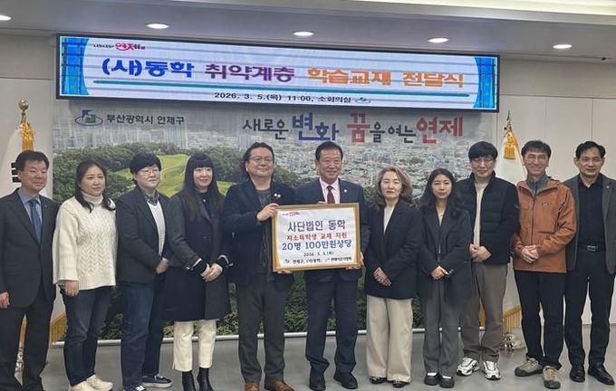 (포탈뉴스통신) 연제구는 지난 3월 5일, 사단법인 동학(이사장 남중현)으로부터 관내 저소득 취약계층 세대 지원을 위한 학습교재를 전달받았다.