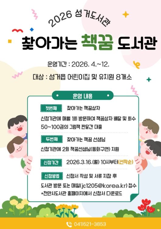 성거도서관 관계자는 “어린이들이 일상 속에서 자연스럽게 책을 접할 수 있도록 지원하는 것이 가장 큰 목표”라며 “앞으로도 지역사회와 협력해 어린이 독서문화를 확산할 수 있도록 노력할 것”이라고 말했다.